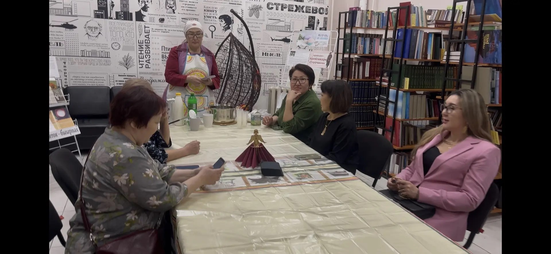 В читальном зале сектора обслуживания участники с увлечением осваивали искусство приготовления якутского национального напитка быырпах. Делилась секретами рецепта Афанасьева Елена Афанасьевна, а гости с интересом вникали в тонкости процесса.