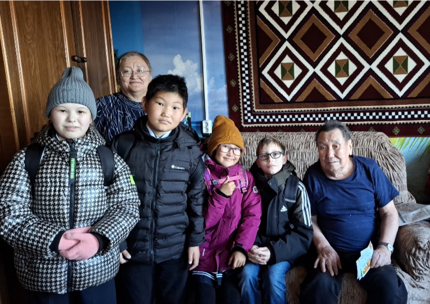 В рамках Декады пожилых людей, библиотекарь Ынгинской сельской библиотека Черемисина Н. Г., учащиеся 4 класса: Вова Якимов, Эрика Баля, Коля Мищук, Саина Сивцева, Руслан Юрченко и ученик 5 класса Гаврильев Алексей, по сложившейся доброй традиции посетили и поздравили с Днем добра и уважения уважаемых земляков- старожилов: Черемисину Веру Александровну, Прокопьевых Данила Михайлович и Марию Афанасьевну, Находкиных Николая Павловича и Дарью Прокопьевну. Дети пожелали дорогим землякам крепкого здоровья, благополучия и радости, рассказали стихотворения и вручили открытки. Библиотекарь искренне поблагодарила всех за труд, любовь к малой родине и личный вклад в развитие Ынгинского наслега.